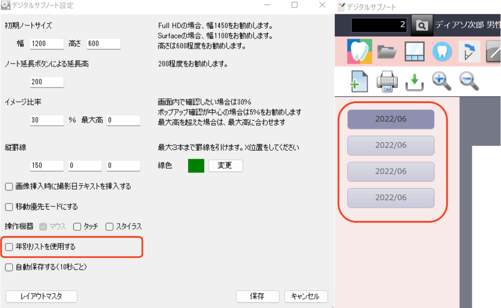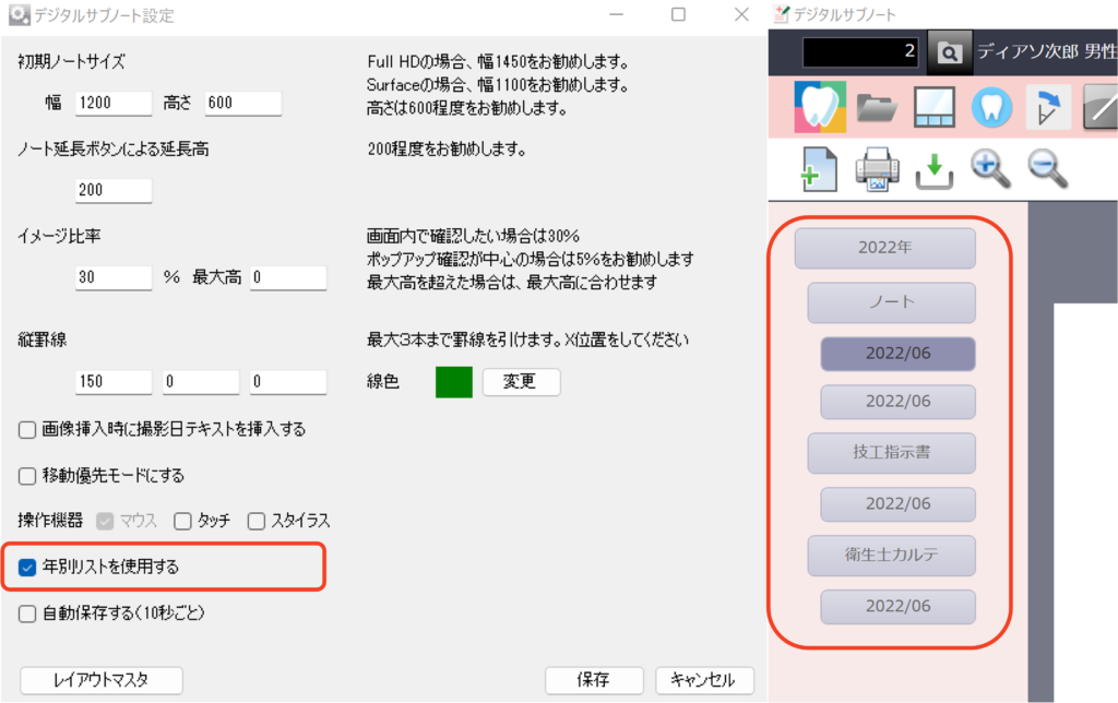 基本タブの、デジタルサブノート設定をクリックしてください。