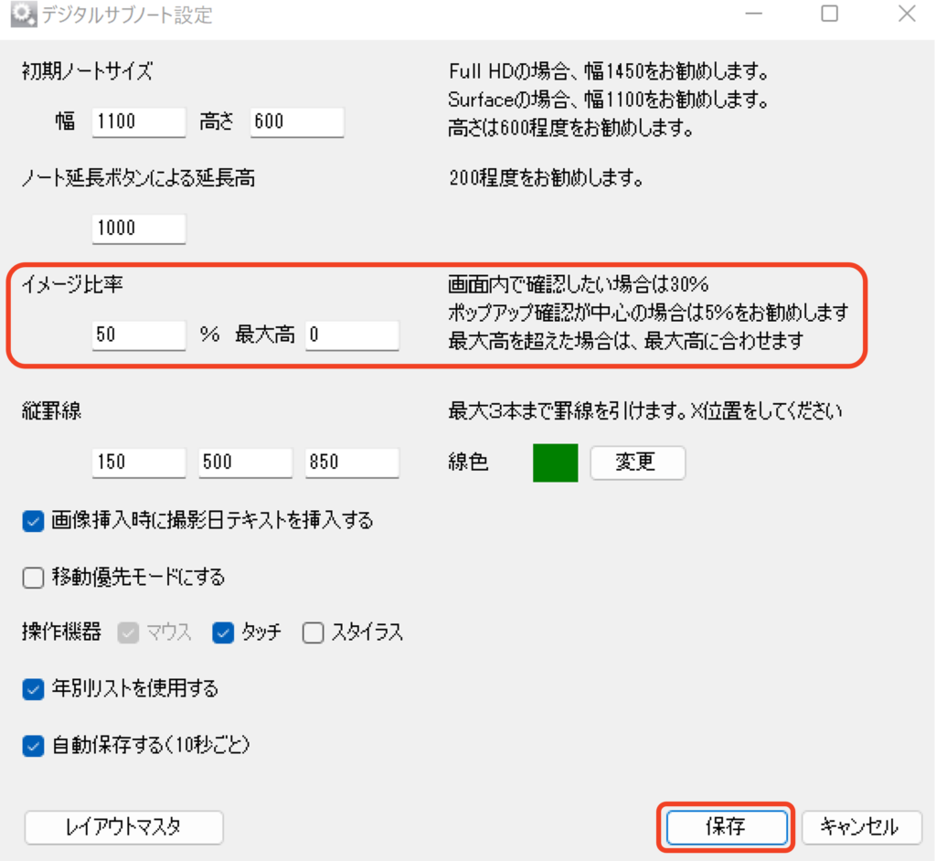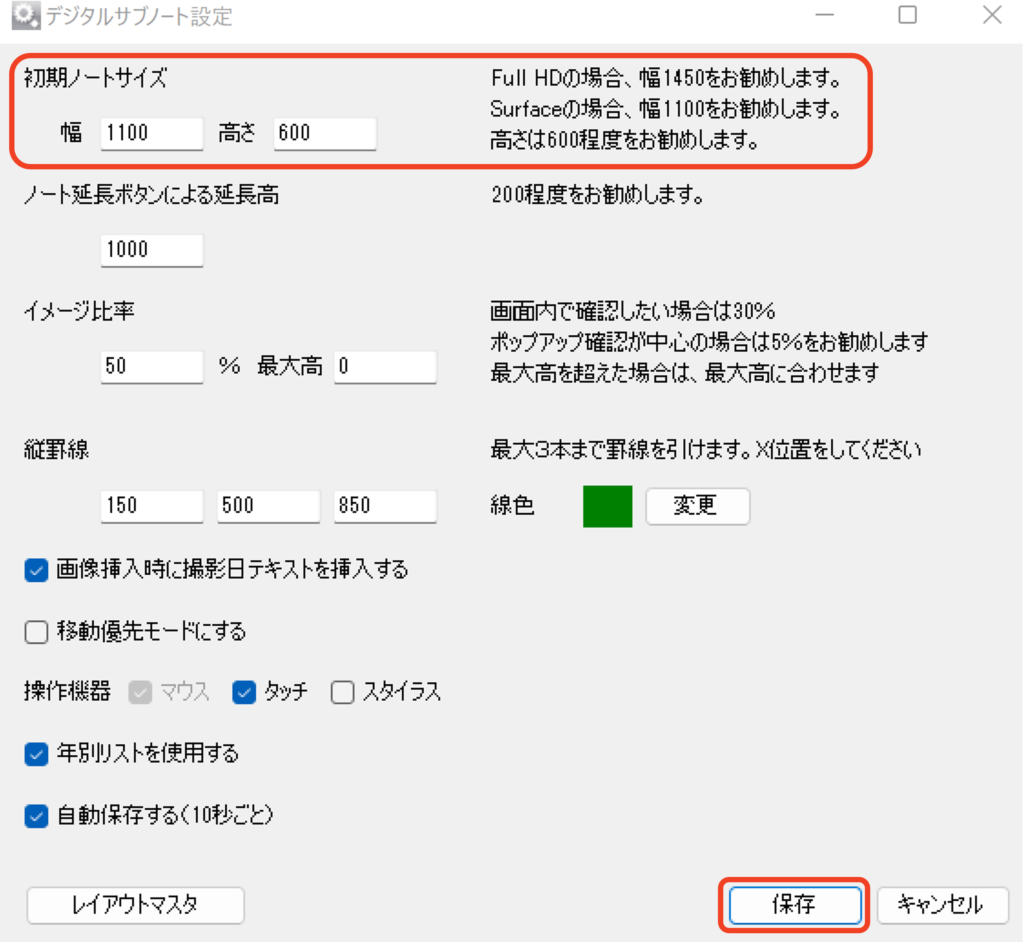 ※ノートの右端からの幅を指定できます。線が不要な場合は0を入力してください。