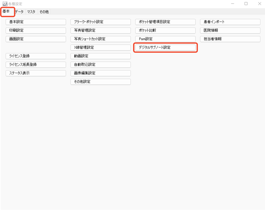 基本タブの、デジタルサブノート設定をクリックしてください。