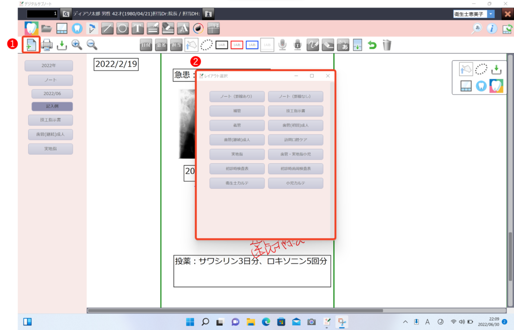 レイアウト選択から、ノートまたは院内テンプレートを選択しページを作成します。