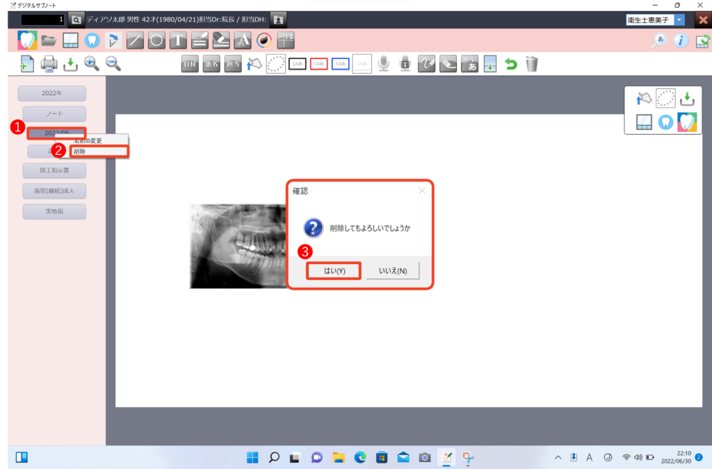 - 削除を選択し「はい」を選択しページを削除