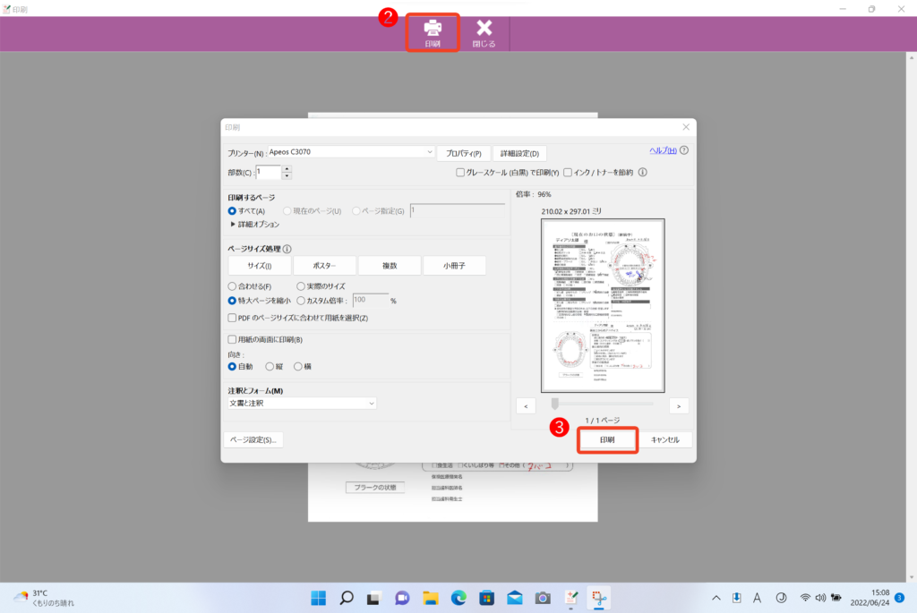利用者向けマニュアル 操作マニュアル 印刷する このページでは、デジタルサブノートで印刷する方法についてご案内致します。 印刷したいページを選択し、印刷ボタンをクリックプレビュー表示されたら、上部の印刷ボタンをクリックプリンター設定や枚数などの詳細設定を入力し、印刷ボタンをクリック