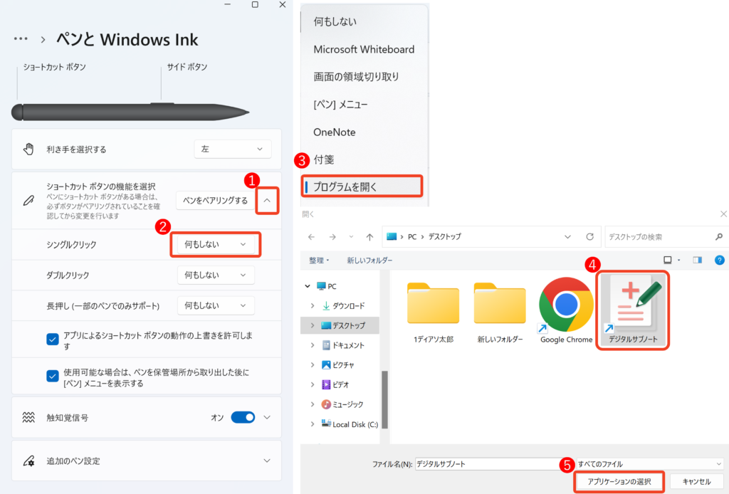 今回は、例としてシングルクリックでデジタルサブノートを開くというショートカットを追加していきます。