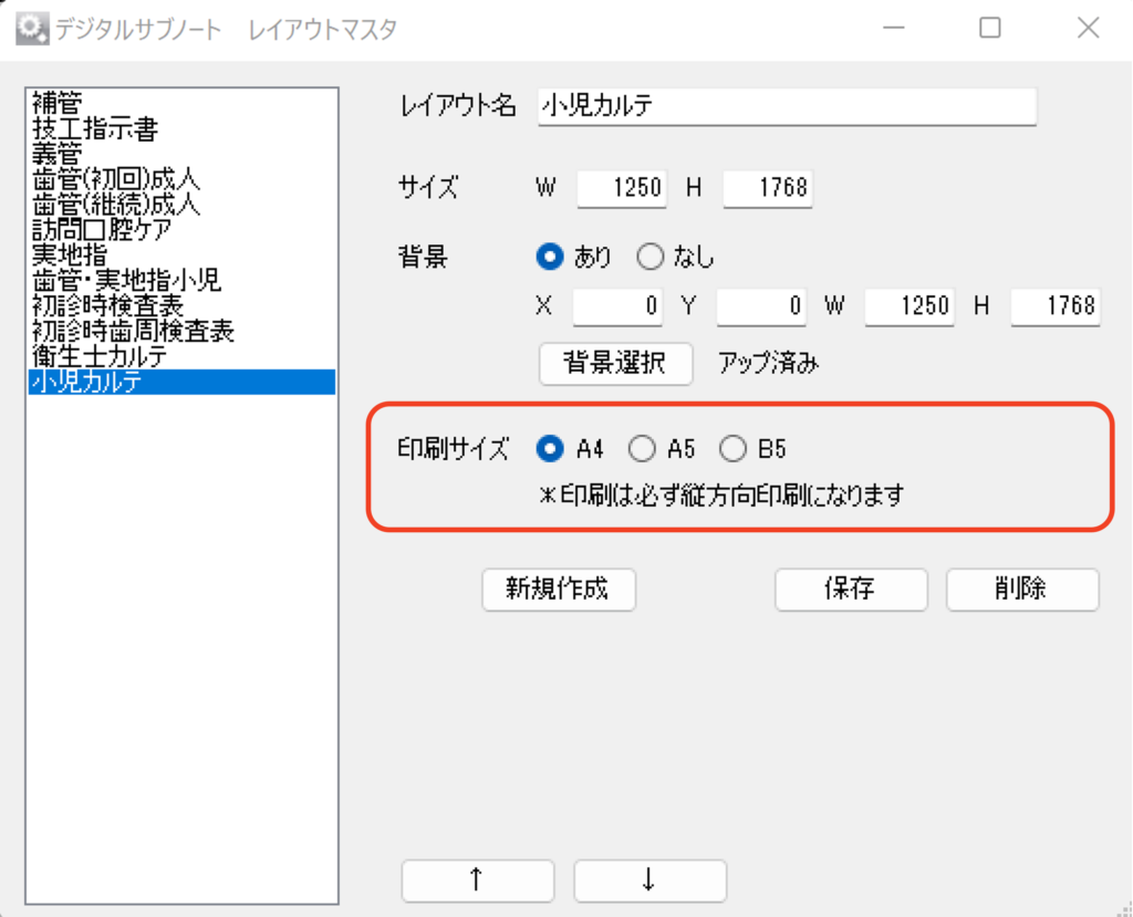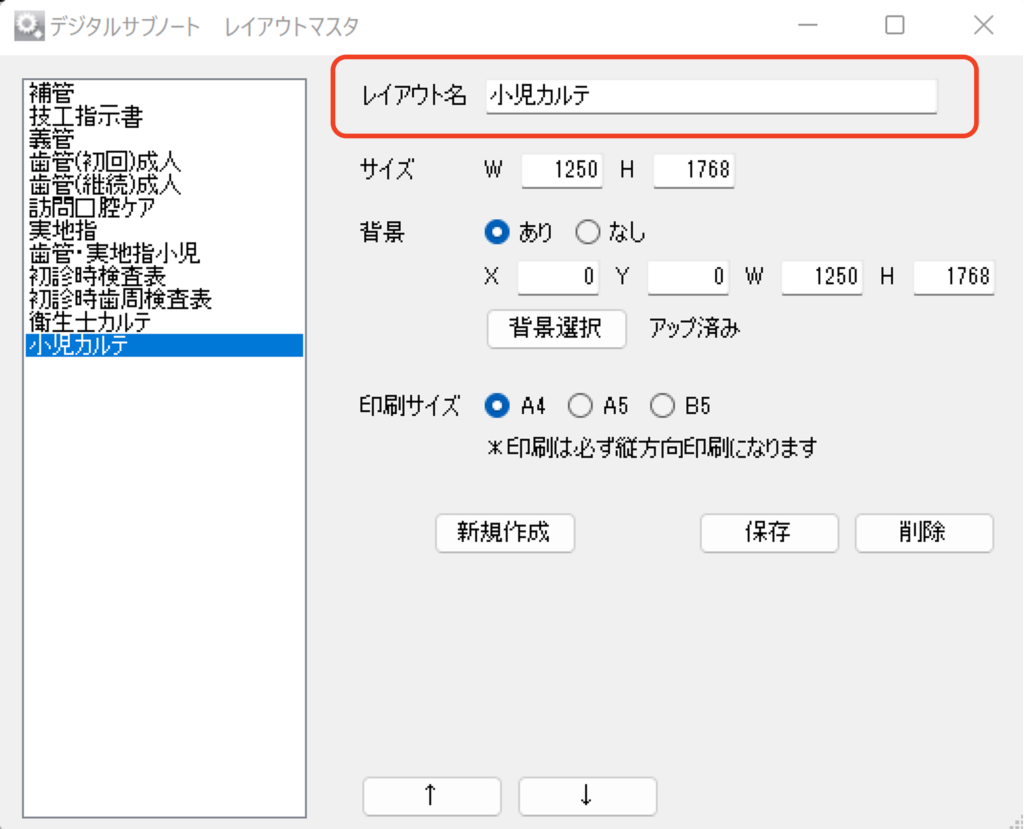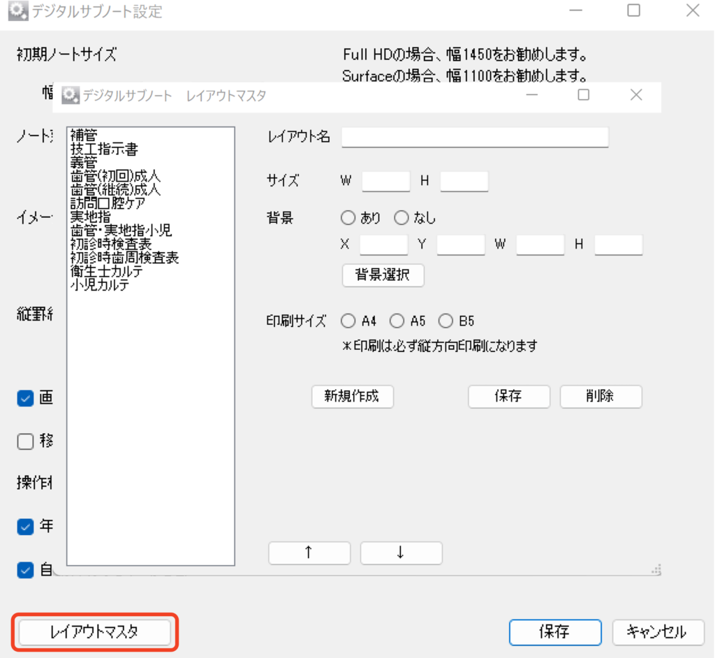 デジタルサブノート設定のレイアウトマスタボタンをクリックし、レイアウトマスタを開きます。